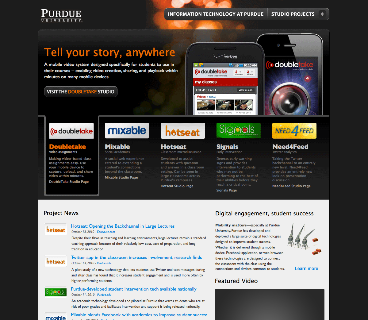 Amongst the hundreds of Purdue IT employees, there is a group of a dozen or so programmers and designers tasked with creating new technology for the classroom. As a student, I was fortunate to intern with this team where I first learned how to build a scalable web application. After graduation and a few years in Chicago, I returned to this team where we went on to roll out several new classroom applications. This page references some of the work done during this time.